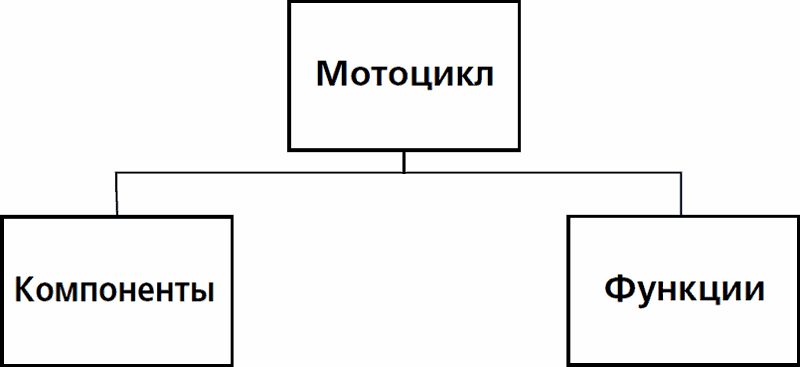Я упоминал об этих концепциях вчера: мотоцикл делится по компонентам и по функциям. Сказав это, я вдруг создал набор квадратиков, размещенных так: