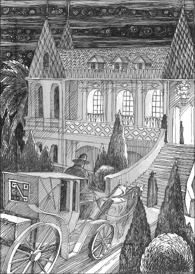 Полночную тишину городской улицы нарушили звуки бившихся о каменную мостовую подков андалузских лошадей, запряженных в красную карету. Экипаж, промчавшись вдоль нескольких домов, остановился у большого каменного замка.
