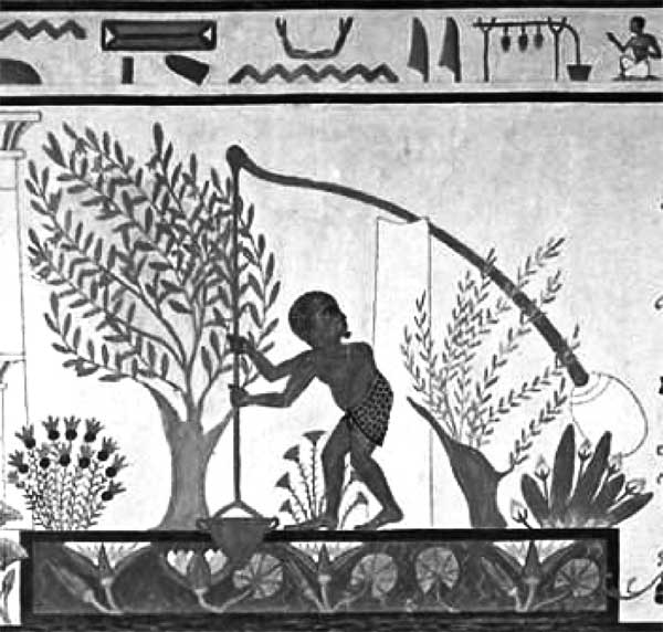 Шадуф (устройство для подъема воды). Фреска в древнеегипетской гробнице