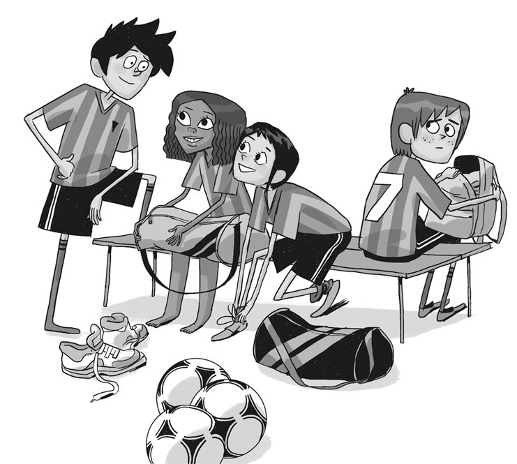 Номер 3, Мэрилин, левая защитница. Отличается тем, что очень быстро бегает. Временами даже забываешь, что она девочка и что в команду её включили по настоянию родительского комитета, чтобы девочек было больше. Мэрилин неплохой игрок, она может сделать хорошую передачу, а ещё она носит капитанскую повязку. Почему – никто не знает.