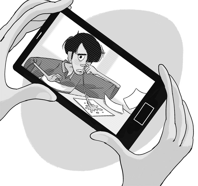 В Тонином Туенти[3] кучу лайков собрала фотка с Грустным на экзамене. Он тогда чихнул и буквально всё вокруг уделал своими соплями, а вдобавок перепачкал экзаменационный лист так, что до него невозможно было дотронуться.