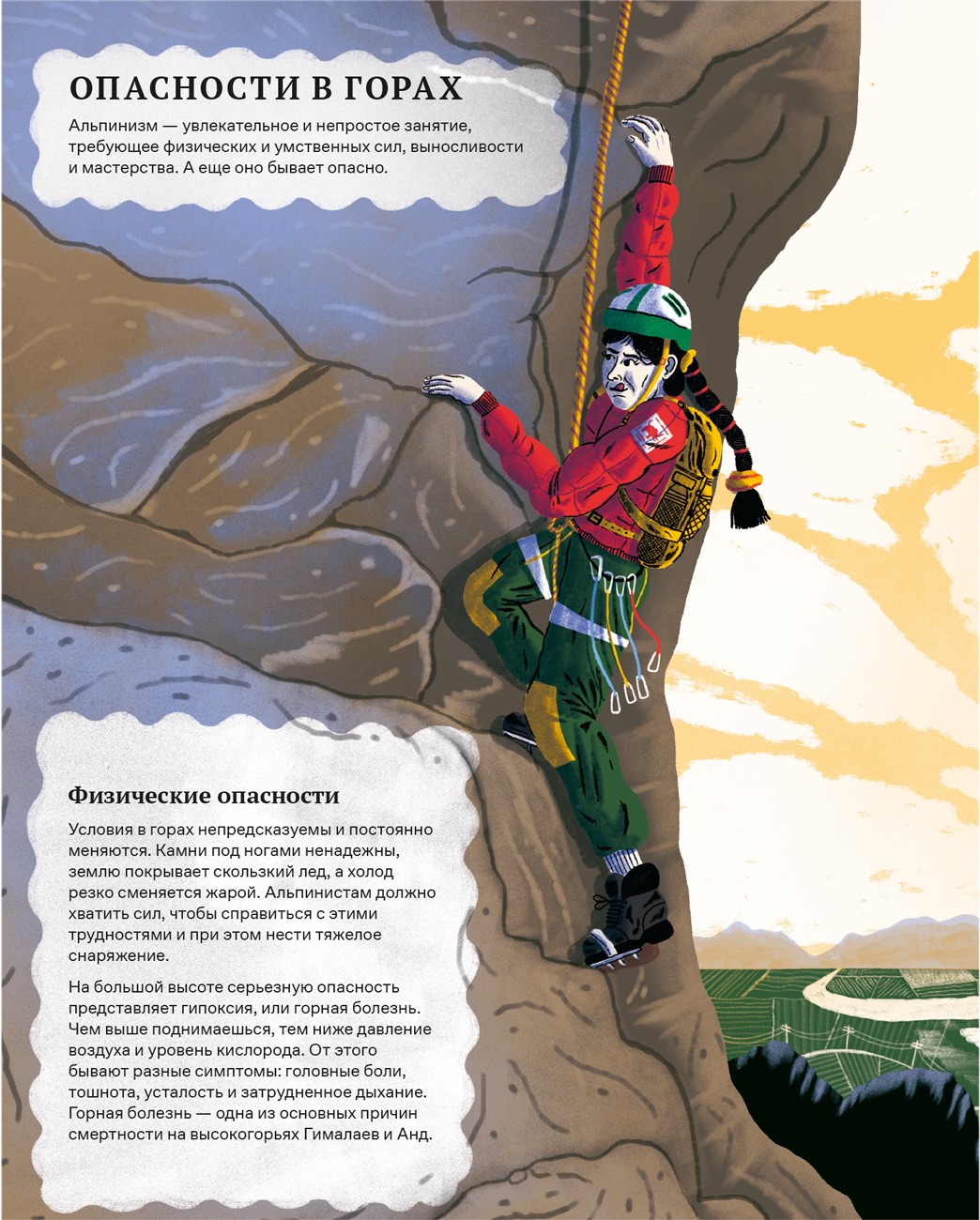 Альпинисты часто используют технические средства: веревки, обвязку и другое альпинистское снаряжение. Если снаряжение подведет, можно пострадать или погибнуть. Поэтому альпинисты должны уметь пользоваться снаряжением и следить за его состоянием.
