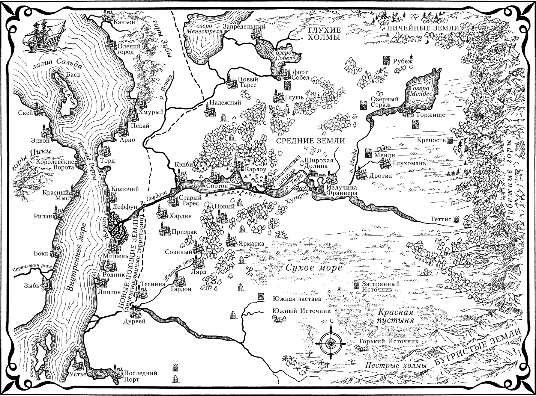 Огромные копыта моего крупного жеребца выстукивали ровный ритм. Когда мы миновали последние дома городка, раскинувшегося вокруг королевского форта Геттис, я оглянулся через плечо. В городе было тихо и спокойно. Огонь, охвативший стены тюрьмы, угас, лишь темные пятна дыма все еще пятнали сереющее небо. Люди, всю ночь сражавшиеся с последствиями устроенной Эпини диверсии, теперь, должно быть, плелись по домам, к своим теплым постелям. Я мрачно уставился на дорогу прямо перед собой. Геттис так и не стал мне домом, но покинуть его оказалось непросто.