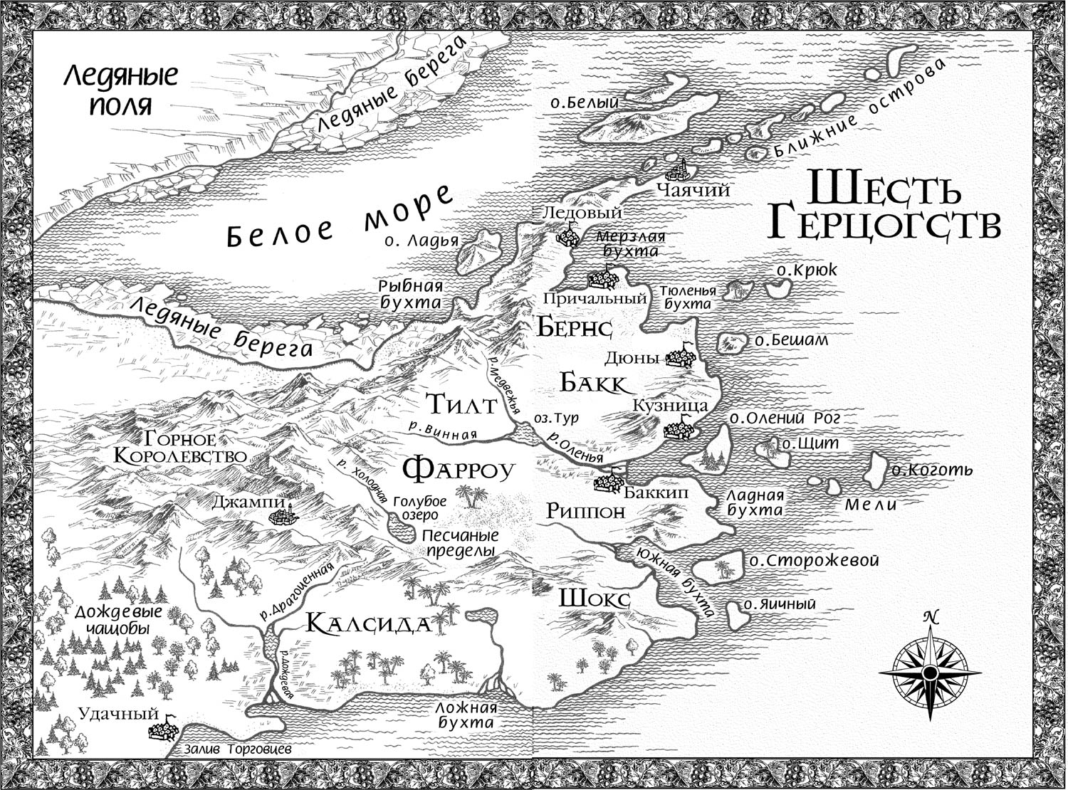 Тем временем из седельных сумок появлялись все новые и новые сокровища. Кипа превосходной бумаги, бутылочки с синими, красными и зелеными чернилами. Толстый имбирный корень, только что пустивший побеги, – к лету он вырастет. Пакетики с приправами. И большая роскошь для меня: круг свежего сыра. В маленьком деревянном ларце я обнаружил забытые, но прежде так хорошо знакомые предметы. Я предполагал, что они навсегда для меня потеряны. Кольцо принца Руриска из Горного Королевства. Наконечник стрелы, пронзившей грудь принца, – лишь чудом тогда брату Кетриккен удалось избежать смерти. Маленькая резная шкатулка для ядов, много лет назад сделанная моими руками. Я открыл ее, но она оказалась пустой. Захлопнув крышку, я поставил шкатулку на стол и посмотрел на Чейда. Нет, он приехал не просто так. Он принес все эти приметы прошлого намеренно – они тянулись за ним, словно изукрашенный шлейф богатой дамы, входящей в тронный зал. Впустив старика в дом, я открыл дверь своему прежнему миру.