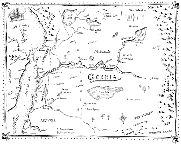 I was eight and my father had taken me with him on a trip to the outpost on Franner’s Bend. We had arisen before the dawn for the long ride; the sun was just short of standing at noon when we finally saw the flag waving over the walls of the outpost by the river. Once, Franner’s Bend had been a military fort on the contested border between the plainspeople and the expanding Kingdom of Gernia. Now it was well within the Gernian border, but some of its old martial glory persisted. Two great cannons guarded the gates, but the trade stalls set up against the mud-plastered stockade walls behind them dimmed their ferocity. The trail we had followed from Widevale now joined a road that picked its way among the remains of mud-brick foundations. Their roofs and walls were long gone, leaving the shells gaping at the sky like empty tooth sockets in a skull. I looked at them curiously as we passed, and dared a question. ‘Who used to live here?’