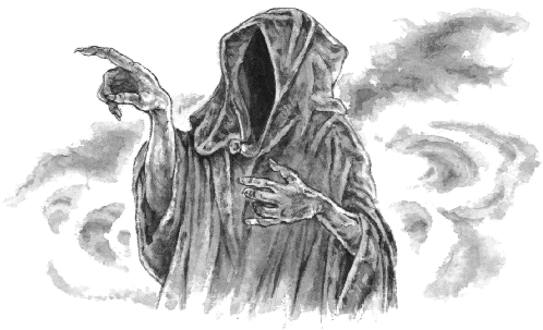 Over the cobbles the thick fog flowed, filling the narrow way with a dense, swirling cloud. Suddenly that smoking sea billowed and divided as a hooded figure, wrapped in a mouldering black cloak, drifted towards the entrance.