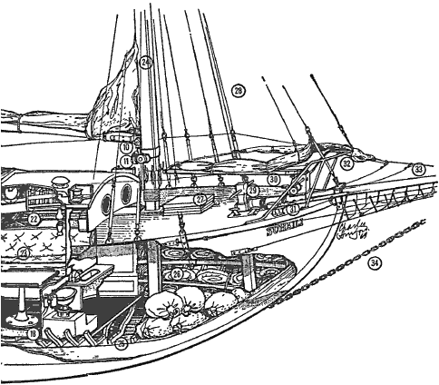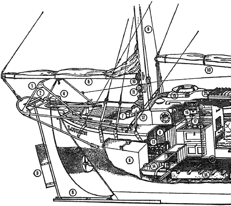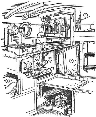 17. Камбуз (радио и штурманский стол напротив, см. следующий рисунок);