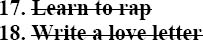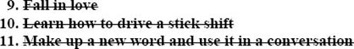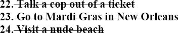 “The List? Fifty things you wanted to do before thirty? Hey, your thirtieth birthday is next month. How far did you get?”