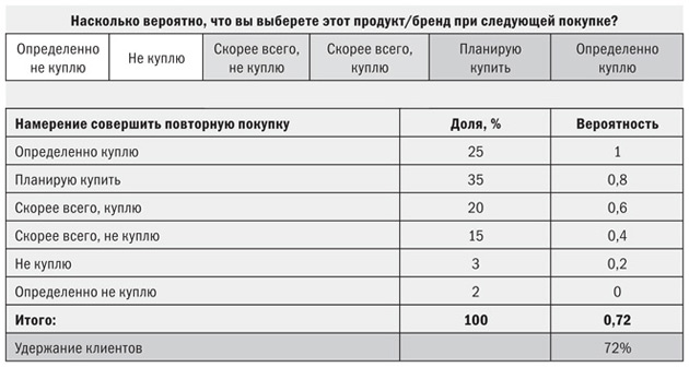 Расчеты показателя удержания клиентовБанки, оптовые поставщики и другие компании, фиксирующие все данные о сделках, могут легко рассчитать показатели удержания клиентов. Но многие другие не вступают в прямые отношения с конечными потребителями и неспособны рассчитать их напрямую. Они могут воспользоваться данными опросов, как показано на рис. 1.8.