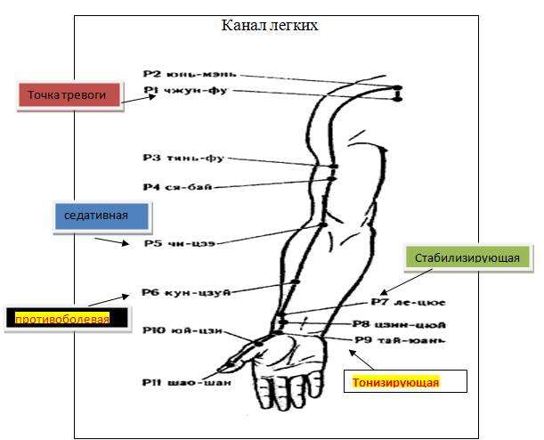 Стабилизирующая Точка – колодец (ло-пункт стабилизирующая к меридиану толстого кишечника) ЛЕ-ЦЮЕ (недостающий ряд) Р 7 Локализация. На границе внешней и внутренней поверхностей предплечья. С лучевой стороны, у наружного края лучевой кости. Выше складки лучезапястного сустава на 1,5 цуня. В углублении над шиловидным отростком. Не беспокоить на 7-м месяце беременности!