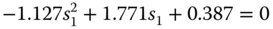 We now substitute the conjugate parameter values together with the refractive index values (ND) into Eq. (4.30a). We sum the contributions of the two lenses giving the total spherical aberration which we set to zero. Calculating all coefficients we get a quadratic equation in terms of the two shape factors, s1 and s2.