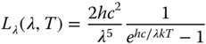 Lλ is expressed in SI units – W m−3 sr−1; h is Planck's constant; c the speed of light; k the Boltzmann constant.