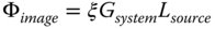 The practical utility of étendue lies in its assistance in expediting radiometric calculations in complex optical systems. If one has a source with some known spectral radiance, Lsource, a system with étendue, Gsystem, and a system throughput of ξ, then the flux, Φimage, arriving at the image is simply given by: