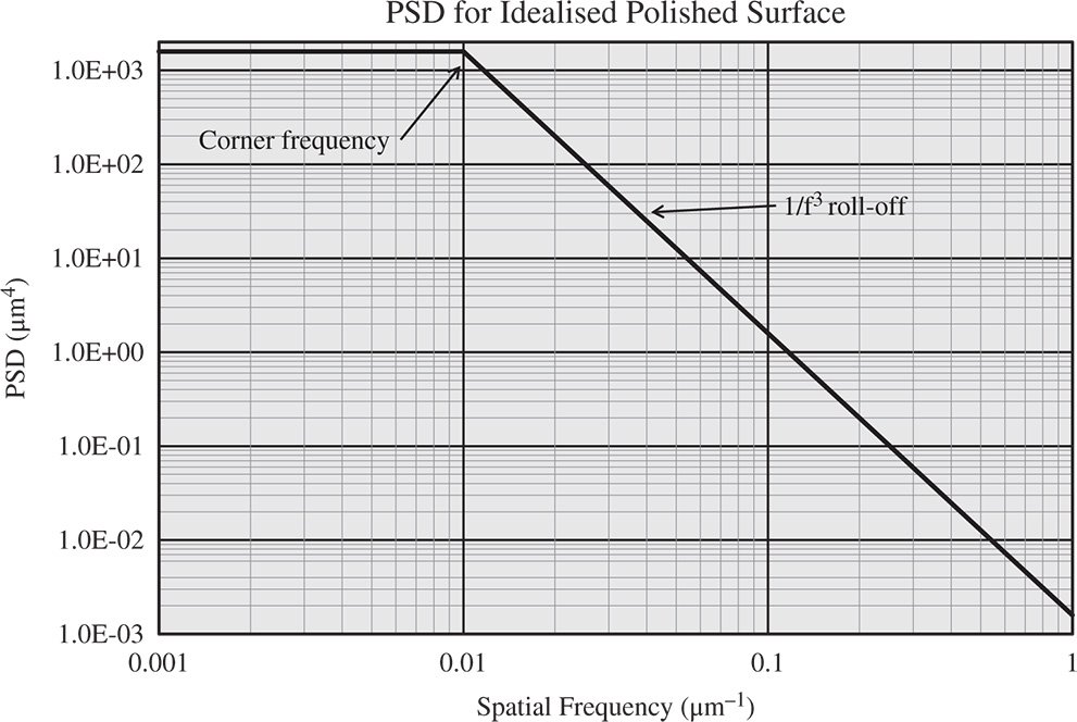 With the introduction of the corner frequency, f0, surface roughness power dependence upon spatial frequency may be modelled in a very specific way, as set out in Eq. (7.17):