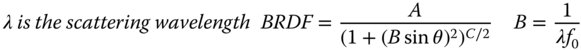 In our specific model, as outlined in Eq. (7.17), the C parameter in Eq. (7.18) is three. The parameter, B, is effectively the inverse of the corner frequency. In terms of the utility of this model with regard to scattering, the spatial frequencies may be directly translated into scattering angles or, more strictly, the sine of the scattering angles. As a consequence, the ABC model may be re-cast to given an explicit solution for the BRDF in terms of the scattering angle, θ:
