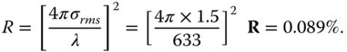 The total hemispheric reflection is given by Eq. (7.16). We are told that σrms = 1.5 nm and λ = 633 nm.