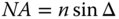 The aperture stop plays an important role in image formation and the analysis of optical systems. There are a number of important definitions relating to the aperture stop and its location. Of key significance is the chief ray which is a ray that that emanates from the object and intersects the plane of the aperture stop at its centre located at the optical axis. The angle, θ, that this ray makes with respect to the optical axis is known as the field angle. Another ray of critical importance is the marginal ray that emanates from the point where the object plane intersects the optic axis and strikes the edge of the aperture. The angle, Δ, the marginal ray makes with the axis effectively defines the size of the half angle of the cone of light emerging from a single on-axis point at the object plane and admitted by the aperture stop. The size of the aperture stop may be described either by its physical size or by the angle subtended. In the latter case, one of the most common ways of describing the aperture of an optical system is in terms of the numerical aperture (NA). The numerical aperture, is the product of the local refractive index, n, and the sine of the marginal ray angle, Δ.