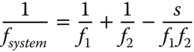 The logic of Eq. (2.9) is that a shorter system focal length can be created than would be reasonably practical with a single lens. Using the same definition as used for the simple magnifying lens, the effective system magnification, Msystem, is given by the ratio of the closest approach distance d0, (250 mm), and the system focal length. The system magnification, is given by: