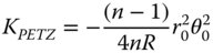 The systematic field dependent defocus can be represented as a spherical surface where the each field point is in focus. The curvature of this surface, CPETZ and equivalent to 1/RPETZ where RPETZ is the Petzval Radius, is given by: