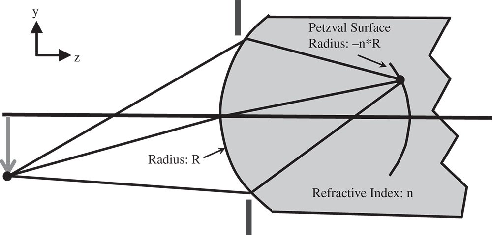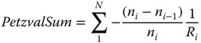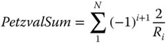 The most significant point about Petzval curvature is, in common with the underlying wavefront error, that it is additive through a system. To illustrate this, we might consider a system with N surfaces with radius of curvature Ri. The material that follows each surface has a refractive index of ni. The Petzval curvature associated with the system is simply the sum of the individual curvatures and is referred to as the Petzval sum. This is given by: