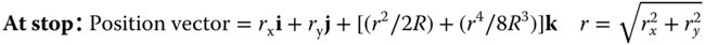 The z co-ordinate of the stop position is derived from the binomial expansion for the axial sag of a sphere including terms up to the fourth power. In making this approximation, it is assumed that h is significantly less than R. If we were to adopt the paraxial approximation we would only consider the first r2 term in the expansion. In the case of third order aberration, we need to consider the next term. It is then very straightforward to calculate the total optical path, Φ, for a general ray in passing from object to paraxial image: