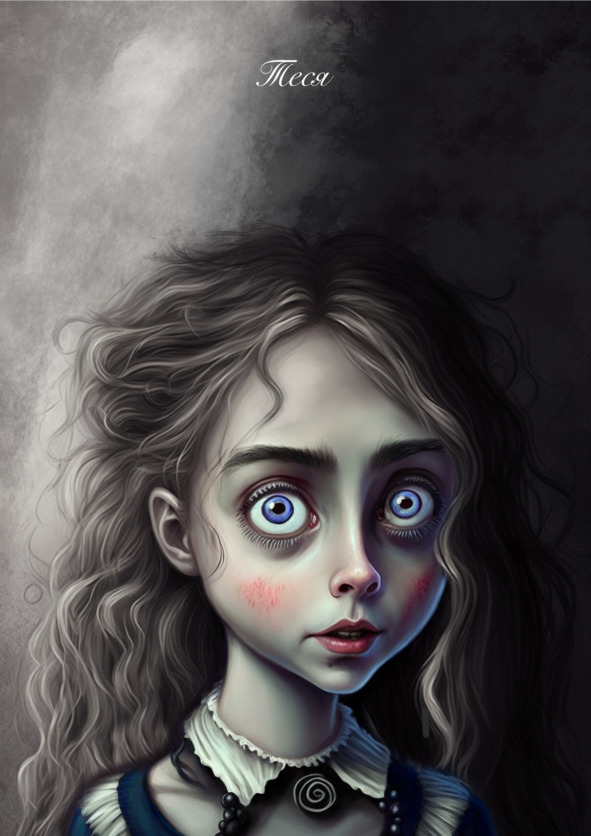 В ночной рубашке к комнату заходит Теся и встает под луч лунного света напротив окна