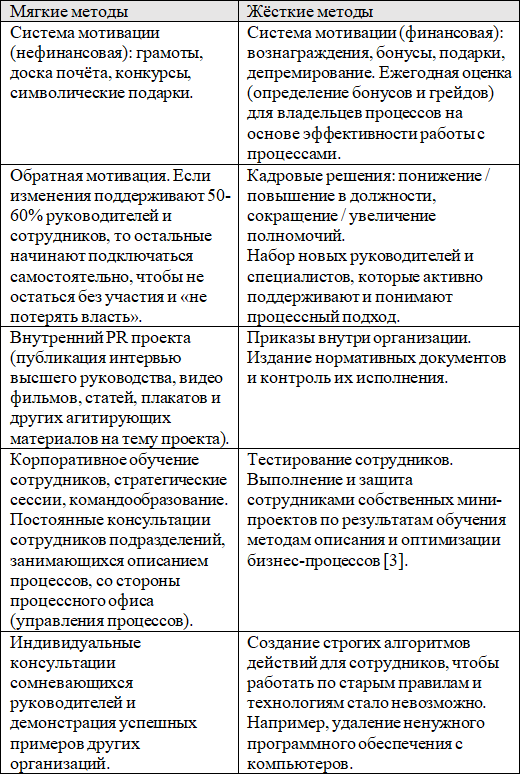Табл. 1.1. Мягкие и жёсткие методы внедрения изменений