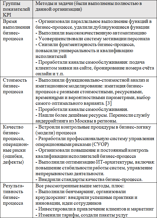 Табл. 2.1. Методы улучшения показателей KPI при оптимизации бизнес-процесса