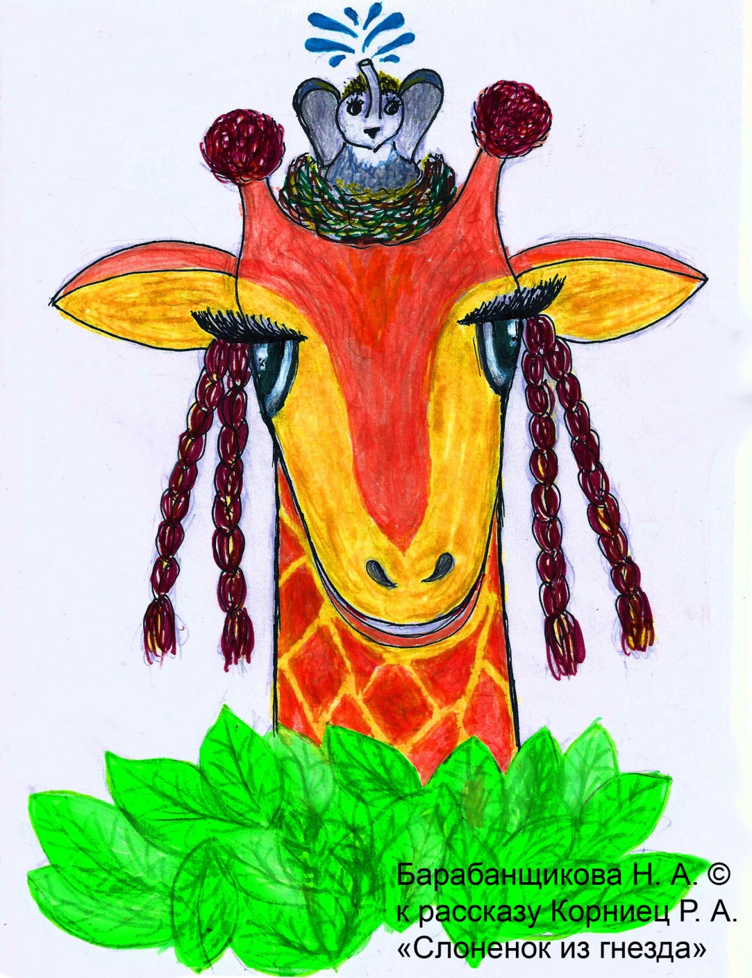 – Не бойся, слоненок. Ты в безопасности. Я – жираф. Прогуливаясь по саванне, я заметил тебя. Ты лежал, и вокруг тебя смыкалось кольцо львов. Я разогнал их и принес тебя к себе домой. Здесь ты побудешь до тех пор, пока я не найду твоих родителей. А пока держи, поешь. И протянул слоненку связку бананов, которую принесла обезьяна и повесила на ветвь дерева.