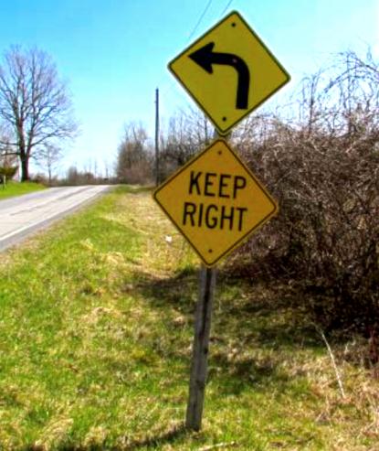 Например, известен несчастный случай, когда увидев запутанный указатель на обочине дороги (подобный показанным на иллюстрациях на следующей странице), водитель машины растерялся, заступорился, отключился от логического контроля за управлением машины (перестал ею управлять!), полностью сосредоточился на попытке определиться в противоречивой и нереальной к исполнению информации, т.к. он запутался (застрял на распутье!), куда ему ехать, и попал в аварию. Налицо ступор конфликта информации (алогичности).