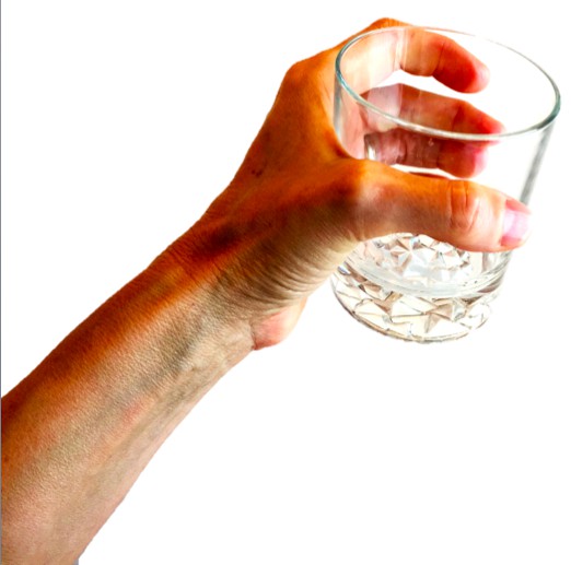 Успех этого элементарного действия всегда полностью зависит от того, на сколько чётко мы умеем чувствовать нашими пальцами норму, адекватную меру прилагаемой силы и балансировать её так, чтобы она была не больше и не меньше силы веса и прочности стекла стакана! Ведь действие не думают, а чувствуют!