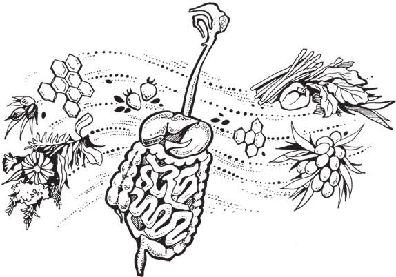 В желудке пища задерживается на несколько часов: там она подвергается воздействию желудочного сока, богатого ферментами и содержащего соляную кислоту, активно перемешивается, разжижается и частично всасывается. Затем пища поступает в тонкую кишку, где продолжается ее дальнейшая химическая обработка желчью, вырабатываемой печенью, и секретами поджелудочной и кишечных желез. Желчь и поджелудочный сок попадают в самое начало тонкой кишки – в двенадцатиперстную кишку.