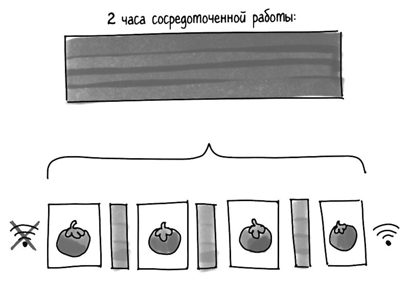 Формула продуктивности: 4 × 25 мин. концентрации, между ними по 5 мин. перерыва.