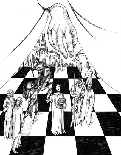 Вокруг безмятежного мистика формируется поле радости, а сам он лишь мост между миром смертных и вечностью. Теперь уже новые странники, вдохновленные примером, устремятся преодолеть порог забвения. Злые силы неведения вступят с ними в смертный бой; они устремляются опутать странников чарами невежества, лишить света знаний и радости.