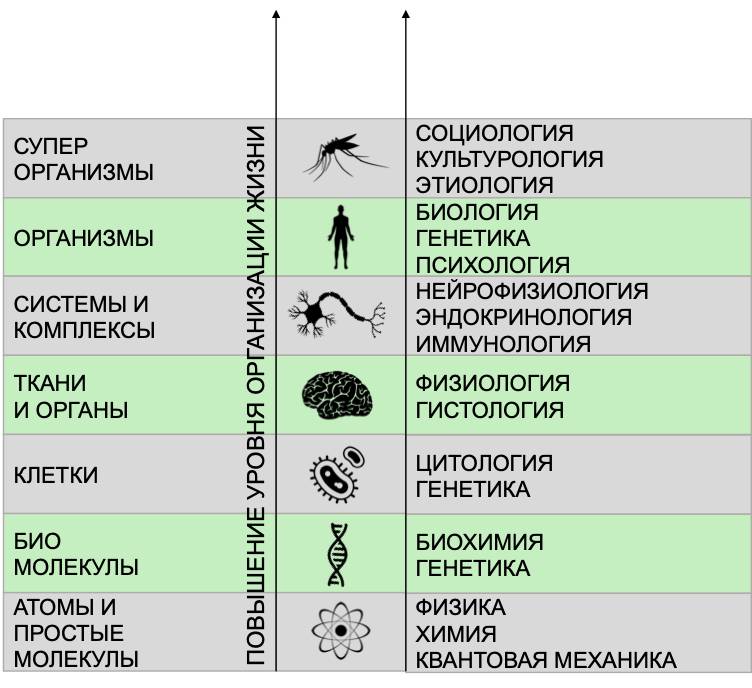 Уровни организации жизни и соответствующие им научные дисциплины