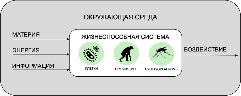 Взаимодействие жизнеспособной системы и среды, в которой она функционирует