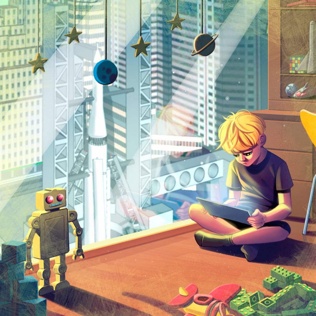 Мальчика звали Крис. Ему недавно исполнилось шесть лет, и он считал себя очень взрослым. А вот у его друга имени не было. Вернее, Крис никак не мог его запомнить, потому что это был длинный набор цифр и букв, который он получил на заводе. Поэтому Крис называл его просто – Роби.