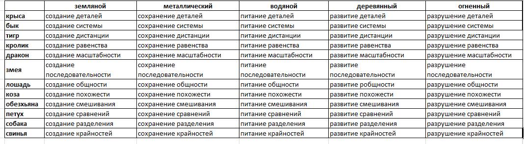 Именно в этом секрет взаимодействия разных по массе тел, иными словами, рожденный в металлический год будет постоянно подгонять рожденного в водяной, точно так же как рожденный в земляной будет подгонять рожденного в деревянный, но уже с меньшей силой. А рожденный в металлический день будет удивляться медлительности людей, рожденных в последующие стихии.