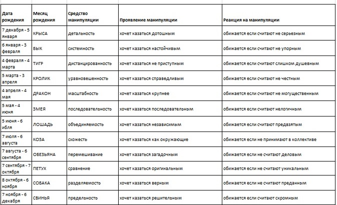 То, что порождает Господин дня называется самовыражением (это дерево у воды), то, что Господин дня разрушает называется сила (это огонь у воды, она его тушит), то, что разрушает Господина дня называется слабость (это земля для воды), и то, что питает Господина дня, называется ресурсы (это метал для воды). Так же мы видим, что этому гороскопу не хватает двух элементов – огня (веселья) и металла (власти), которые его полностью не интересуют, и не занимают и секунды его внимания. Они его не ослабляют, и не разрушают, он просто не верит в их силу и благоприятное влияние для себя. Очень частой причиной расставания между супругами являются именно не соответствия между их Богами. Ведь получает, что то, к чему стремится один, другой просто не замечает или игнорирует, а это всегда обижает другого, иными словами дает веский повод для расставания. С другой стороны, теперь мы точно знаем, что выбирать себе в партнеры или в спутники жизни нужно людей с похожими стихиями и Богами, а это не так уж и мало для того, чтобы прожить полноценную и счастливую жизнь. Чтобы не пугаться такого многообразия вариантов черт личности лучше всего начинать анализировать человека по тем стихиям, которые у него сочетаются друг с другом, а потом те которые не сочетаются. Это и будет его характер.