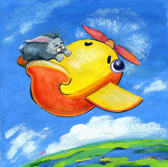 Зайка не заставил просить себя трижды. Он ловко запрыгнул на крыло и вцепился в него всеми лапками. Ему было страшно… но желание взлететь вверх оказалось сильнее.
