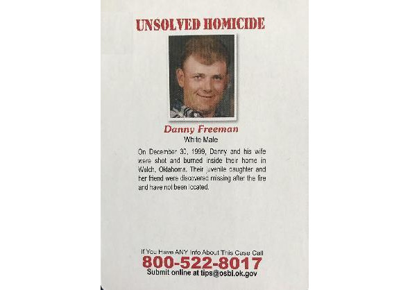Плакат с информацией об убийстве Кэти и Дэнни Фримен.