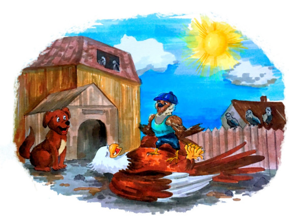Жили голуби в отдельном, специально для них построенном двухэтажном домике. И находился этот дом выше всех. С самого утра в голубятне случился настоящий переполох. Дело в том, что вот уже не первую ночь в огород проникал хитрый лис и терроризировал голубей, а также соседских кур.