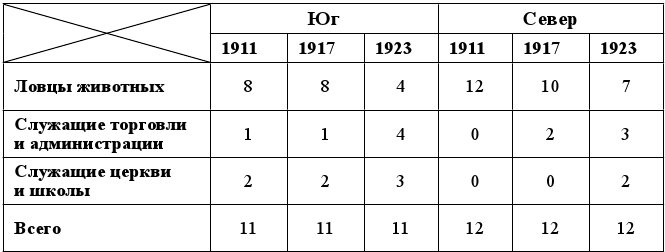 2) избранные их своей среды представители местного населения (старше 30 лет, охотники, финансово и экономически независимые).