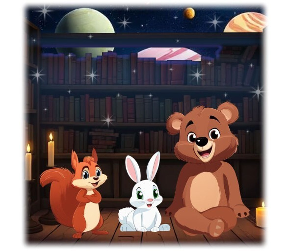 Бельчонок, зайчик и мишутка,Словно онемели:Сидели без движения,Дышали еле-еле.Никто не мог представить,Что круглая Земля,Но отвлекаться от рассказа,Им никак нельзя.
