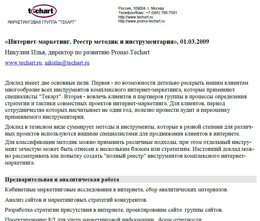 Не буду сейчас пересказывать ее содержание. Только для порядка приведу здесь выдержку из секретного документа, образца 2009 года. Это обзор маркетинговых методик компании «ТекАрт», с которой я долгое время сотрудничал, будучи корпоративным пиарщиком.