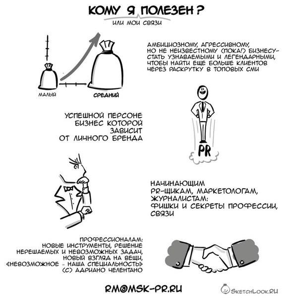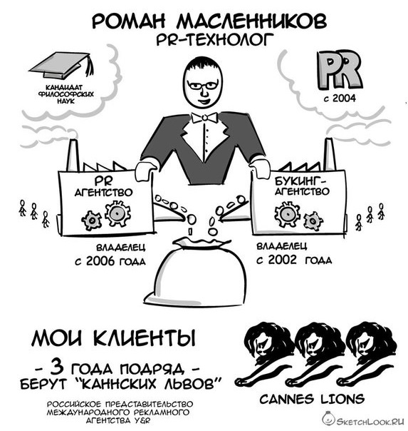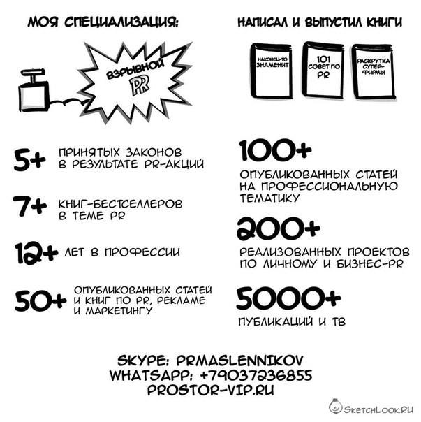 Мне очень нравится общаться с людьми, особенно с близкими по профессии. Так получается, что все, о чем бы я не спросил – всегда свожу в мыслях к пиару. Читаю про продюссирование у Александра Роднянского, где он пишет, что «не каждый фильм удачный и гарантировать ничего нельзя», и тут же перекладываю, как это могло быть в пиаре. Читаю в книге Игоря Свинаренко интервью пластического хирурга, и там он говорит, что «хороший результат является ожидаемым, но не гарантируемым». Прямо как у нас – во взрывном пиаре, получается, что успешен тот, кто просто СДЕЛАЛ БОЛЬШЕ проектов. Как и пластических операций. Они, кстати, как и пиар – не обязательны, но несколько сотен оргазмов в жизни прибавляют.