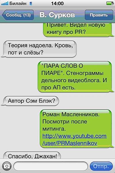 Через неделю снова скайпимся, мне собеседник присылает ссылку на новость типа: «А вот и наш инфоповод, теперь про него можно говорить».