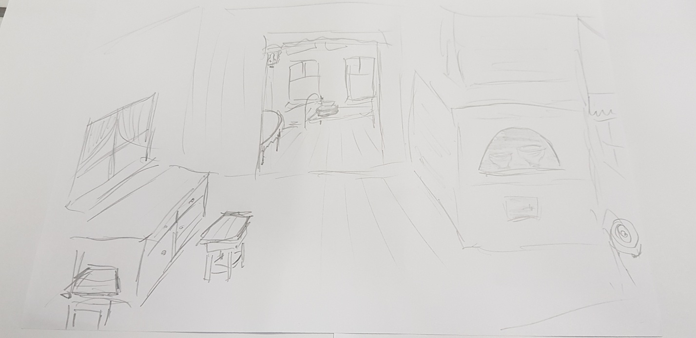 Слева от входа стол, придвинутый к окну, пара тяжёлых табуретов, коричневых. У стола есть два выдвижных ящичка, в которых что-то навалено и две дверцы, за которыми были чистые чашки, тарелки, кастрюльки. Перед окном видны ветки яблони-скороспелки. Дальше проходим во вторую и заключительную часть дома, слева окно и перед ним стол на четырёх ножках, накрытый скатертью, и табуретом. Прямо последние 2 окна, перед ними железная, панцирная кровать, на которой мы спали с братишкой вдвоём, над окнами рамы со старыми фотографиями. Окна смотрят в сад. Днём и к вечеру, именно с этой стороны комната заливается светом. Под окнами целая поляна высоких цветов, розовые, белые, красные. Красиво! Справа, вдоль стены, стоит ещё одна железная кровать, над ней подобие ковра, только это больше похоже на цветное покрывало с