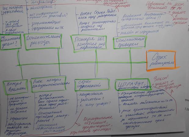 1 – Страх работников. Делаем наскальные записи и схему диаграммы: