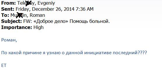 В телефонной беседе, оказалось, что вопрос не в том, что не поставил в копию, а в самом содержании. Мне «порекомендовали» заниматься «благотворительностью» вне рабочей почты и не отвлекать коллег от работы. «Я всё понял Евгений. Извини. Больше такого не повториться».